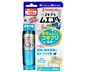 3位は、空間に拡散して“潜んでいる個体”へ届かせるタイプです。KINCHOのQ&Aでは、窓や扉を閉め切って、部屋の広さに合わせてプッシュし、約30分閉め切る使い方が示されています。業務用の説明でも、6畳あたり4プッシュ、噴霧後30分置くといった運用が記載されています。